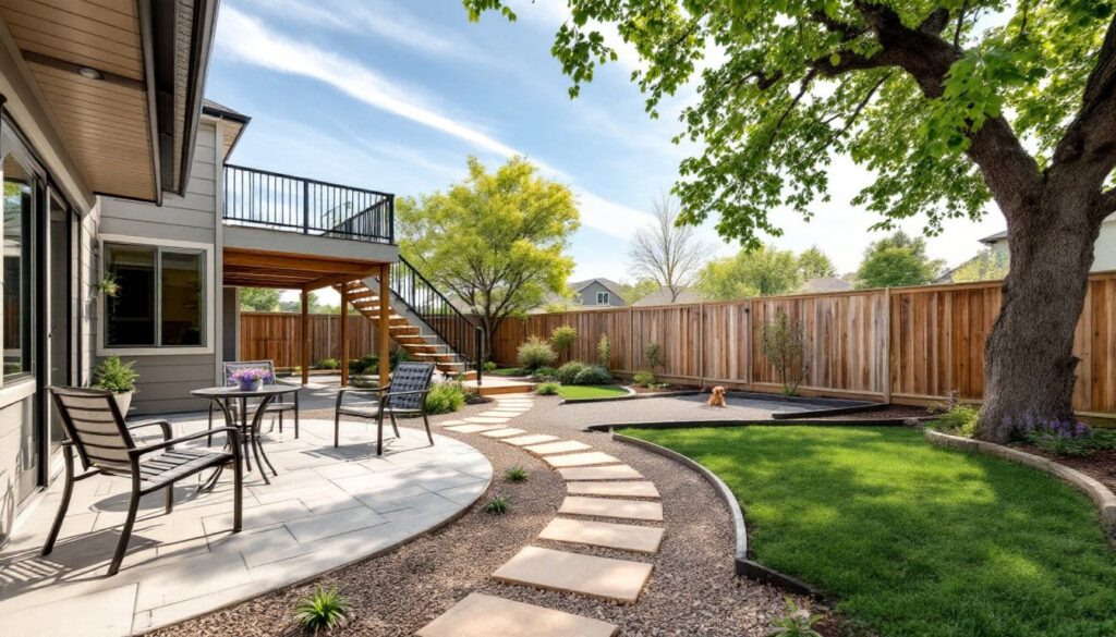 • Decks and patios replace lawn with immediately usable outdoor living space, especially beneficial in yards with poor drainage or uneven terrain.